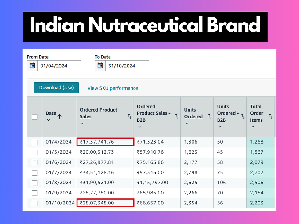 ✅ Hero SKU Focus – Collagen: Identified collagen as the best-performing product and doubled down on budget allocation.